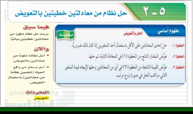 | عرض بوربوينت للدرس الثاني نظام معادلتين خطيتين بالتعويض - إعداد: سالم السهيمي | ||