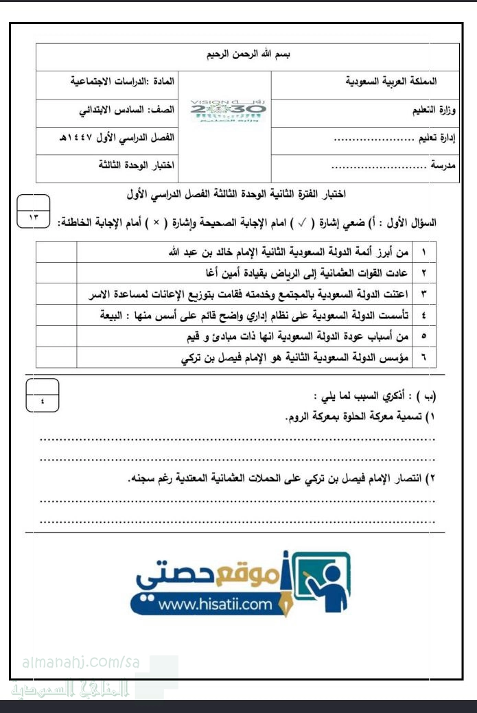 تم إيجاد الملف: نموذج اختبار الوحدة الثالثة الدولة السعودية الثانية
