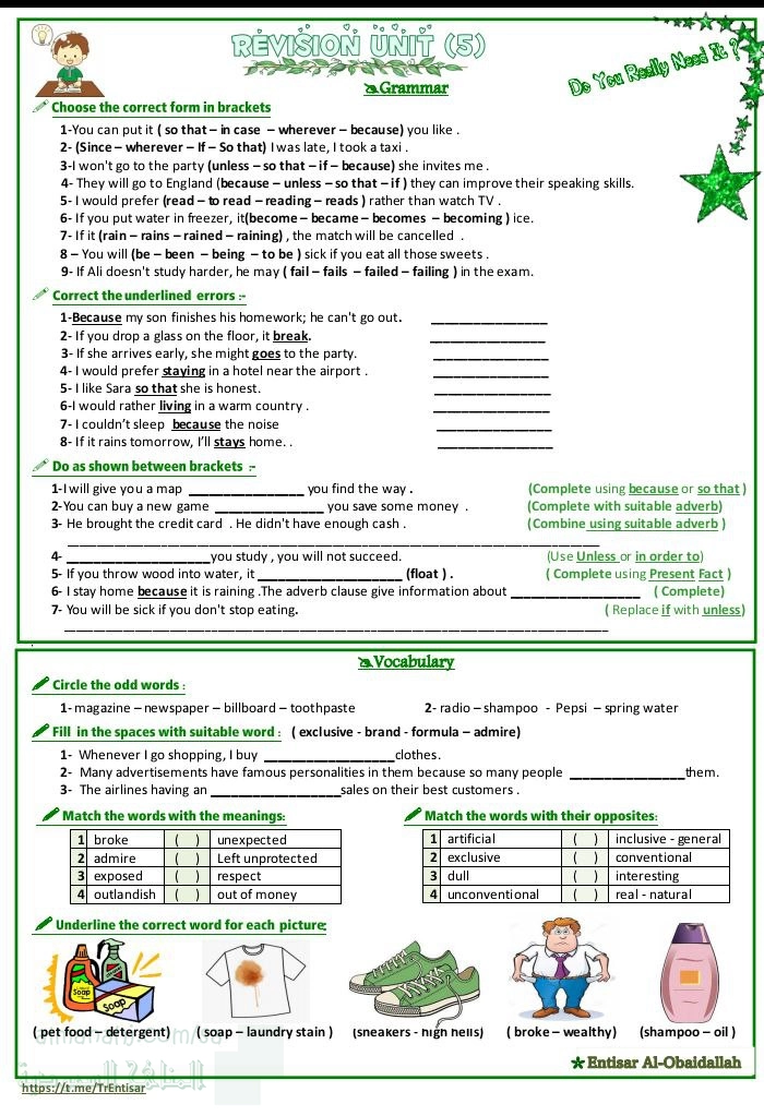 | مراجعة قواعد Grammer الوحدة الخامسة Do you really need it | ||