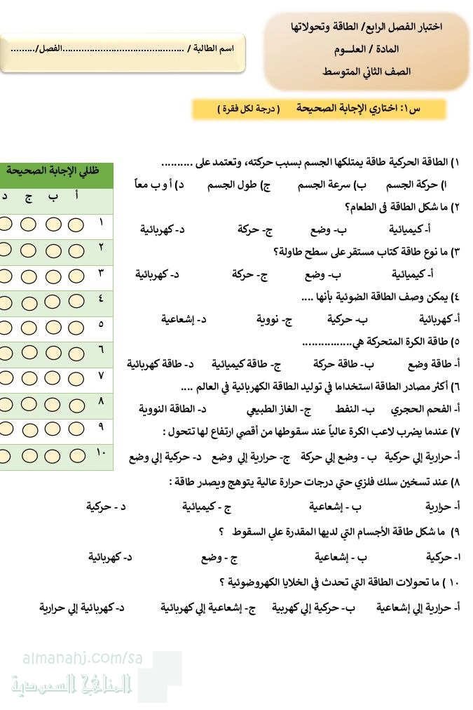 تم إيجاد الملف: اختبار الفصل الرابع الطاقة و تحولاتها