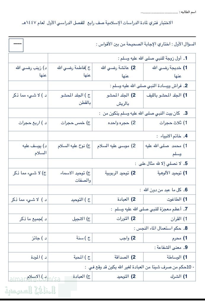 | اختبار إسلامية الفترة الثانية 1447ه | ||