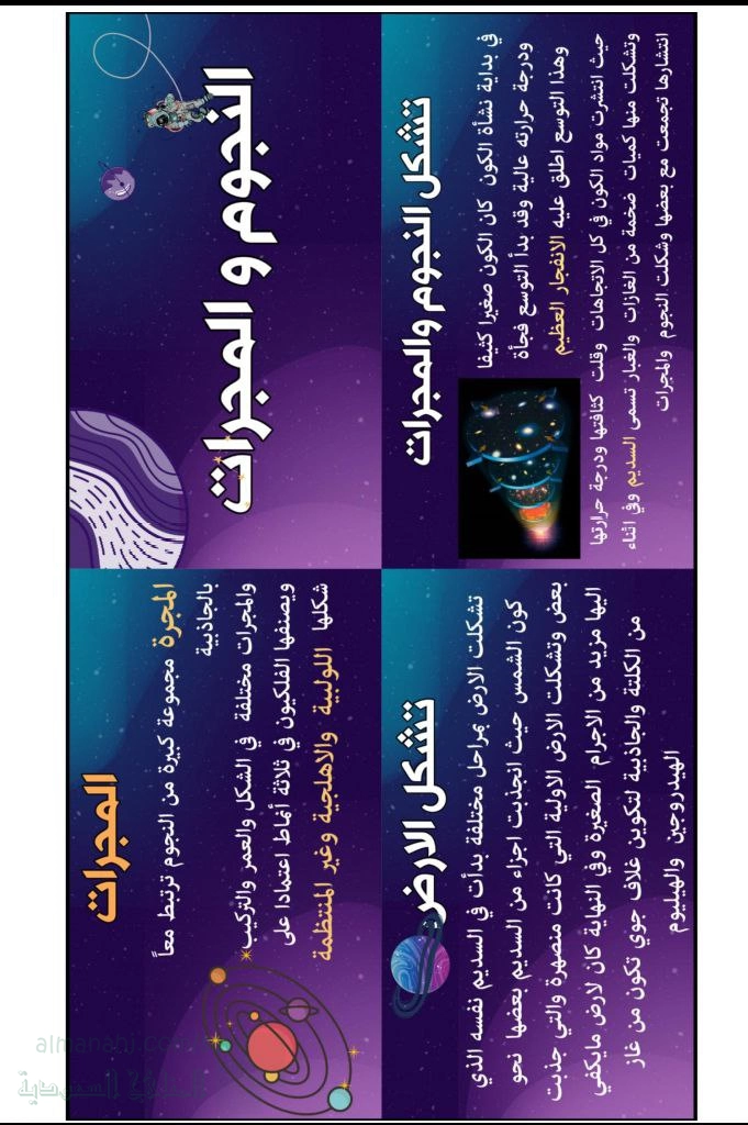 معلومات الملف: مطوية علوم للدرس الثاني النجوم و المجرات من الفصل الثامن الفضاء من مقرر علوم الفصل الأول 1447ه‍ ، نتعلم من المطوية : _ تعريف المجرة _ الانفجار العظيم _ مراحل تشكل الأرض