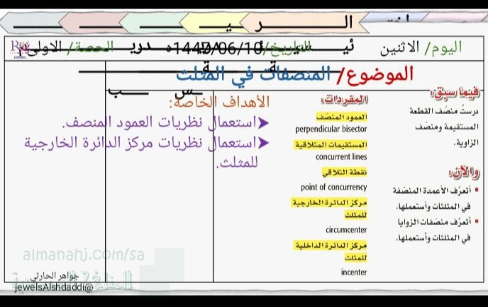 | عرض بوربوينت مفصل لفصل المنصفات في المثلث - إعداد: جواهر الحارثي | ||