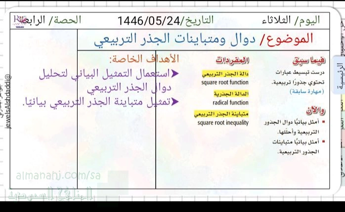 | عرض بوربوينت لدرس دوال ومتباينات الجذر التربيعي - إعداد: جواهر الحارثي | ||