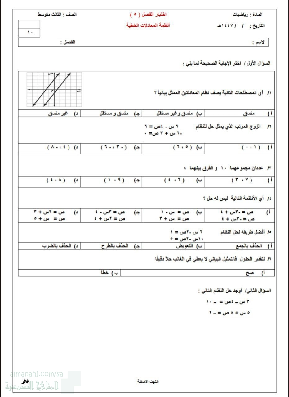 يتم الآن تحضير الملف (اختبار الفصل الخامس أنظمة المعادلات الخطية 2) من أجل التحميل