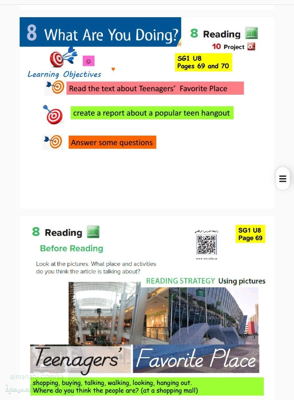 | مراجعة الدرس الخامس Reading and project من الوحدة الثامنة - إعداد: نورية الغامدي | ||