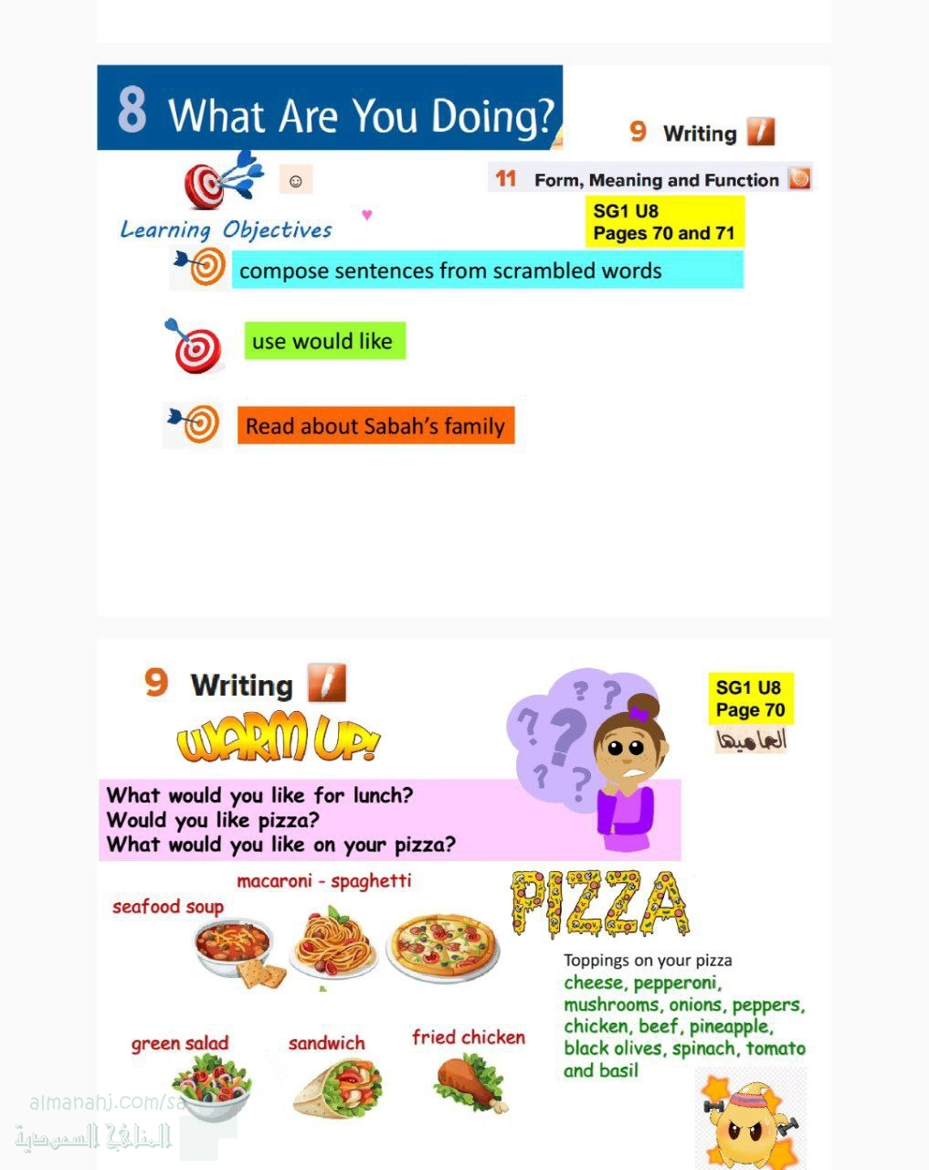 معلومات الملف: مراجعة الدرس السادس Writing من الوحدة الثامنة What are you doing ? | ||