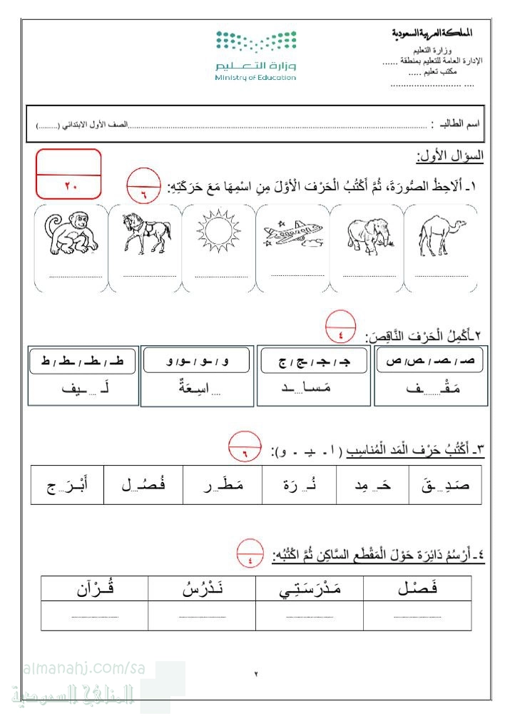 أنت هنا: موقع المناهجالمناهج السعودية الصف الأول لغة عربية الفصل الأول اختبارات