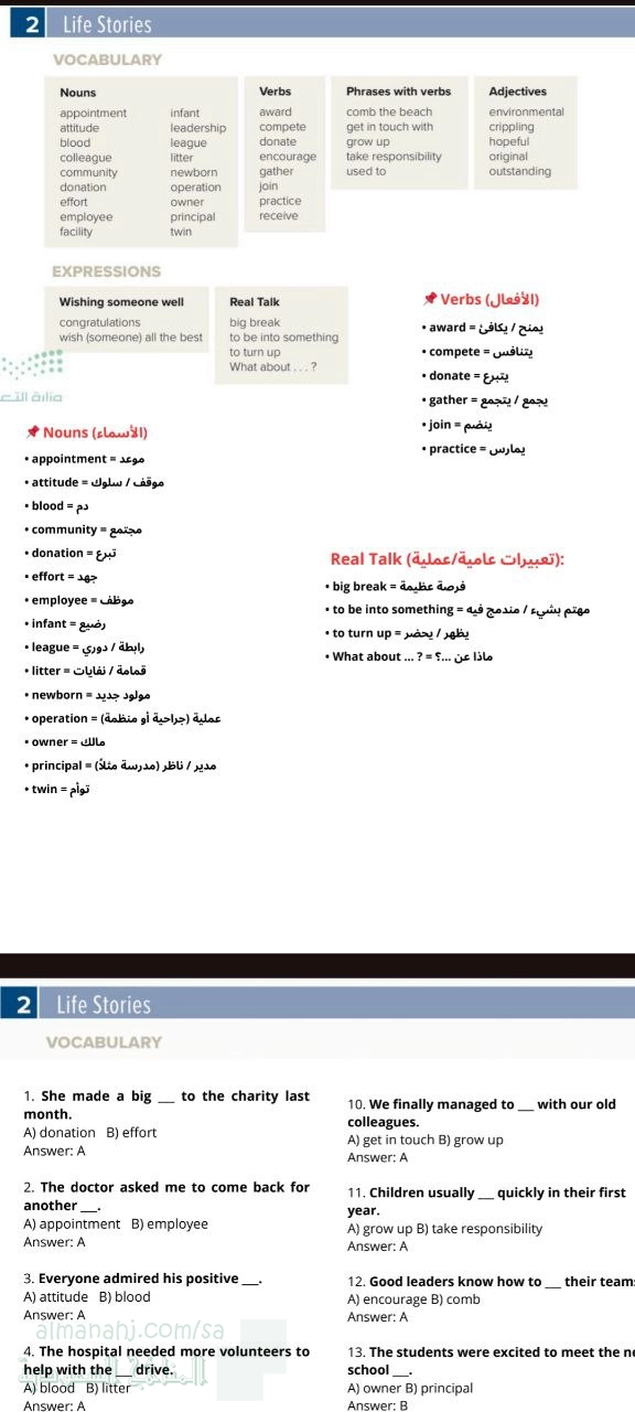 11. الصف الثالث المتوسط, لغة انجليزية, مراجعة الوحدة الثانية