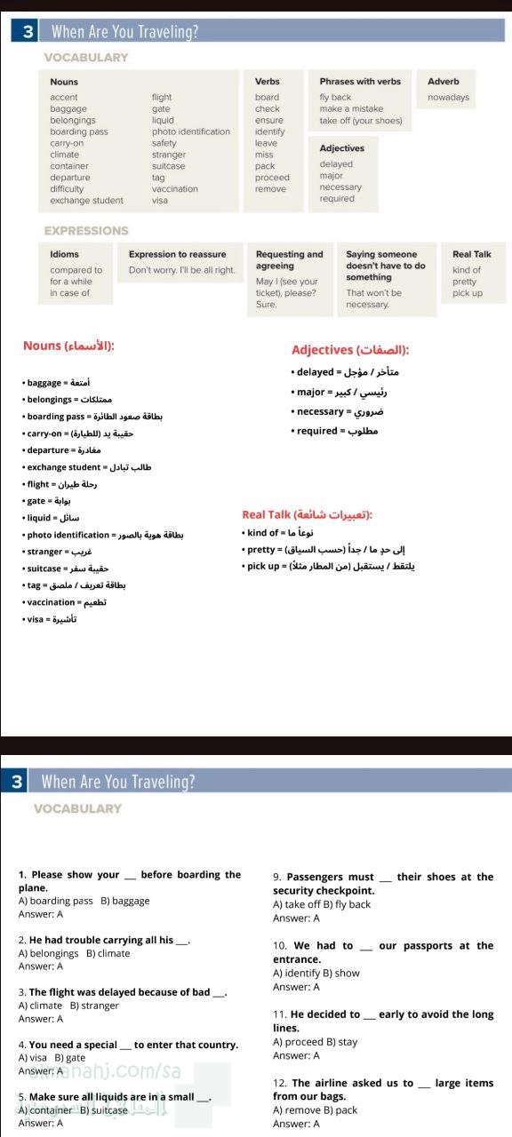 10. الصف الثالث المتوسط, لغة انجليزية, مراجعة الوحدة الثالثة