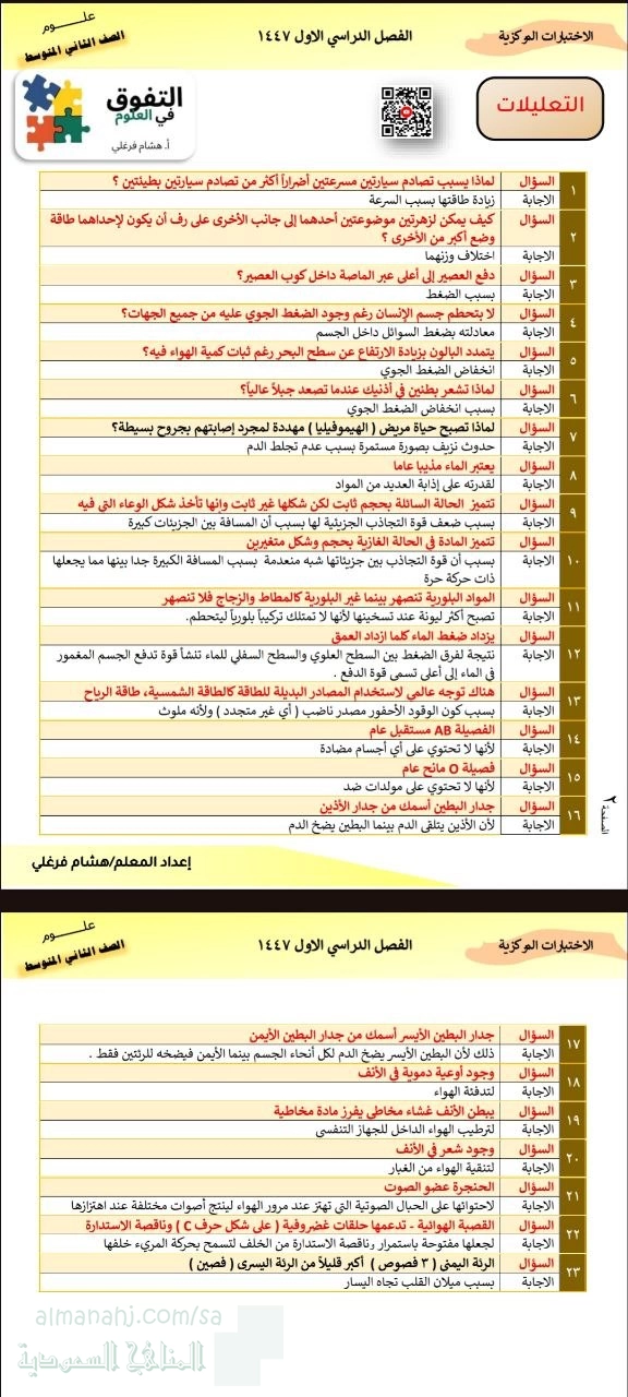 معلومات الملف: يقدم هذا الملف مجموعة من التعليلات والتفسيرات العلمية المركزة للظواهر والأسئلة الشائعة في منهج العلوم. | ||