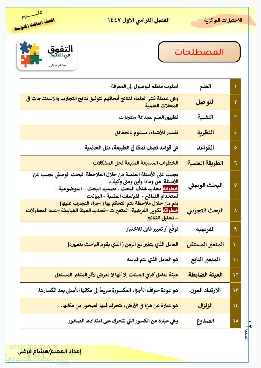 | أنت هنا: موقع المناهج ⇦ المناهج السعودية ⇦ الصف الثالث المتوسط ⇦ علوم ⇦ الفصل الأول ⇦ مذكرات وبنوك |