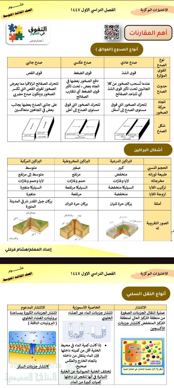 أهم المقارنات في الاختبارات المركزية, الصف الثالث المتوسط, علوم, الفصل الأول, 1447_1448 - المناهج السعودية