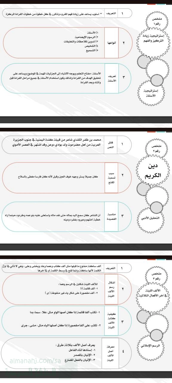 1. لغة عربية, الفصل الأول, 1447_1448, ملخصات للمواد المركزية