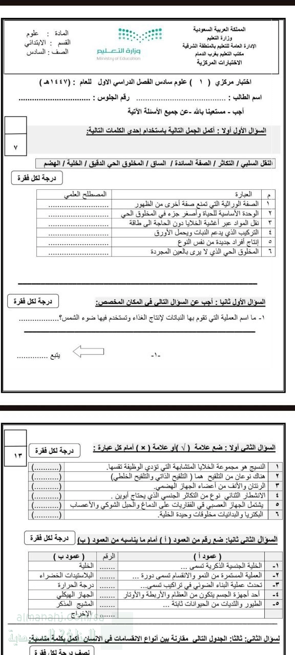 معلومات الملف: نقدم لكم في هذا الملف اختبار مركزي بمنطقة الشرقية في مادة العلوم للصف السادس للفصل الدراسي الأول للعام 1447هـ... | ||