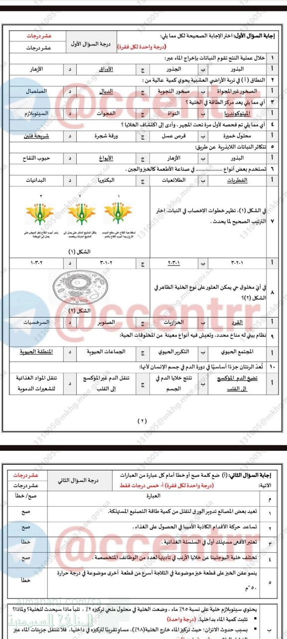 10. إجابة اختبار مركزي تابع لمحافظة عسير