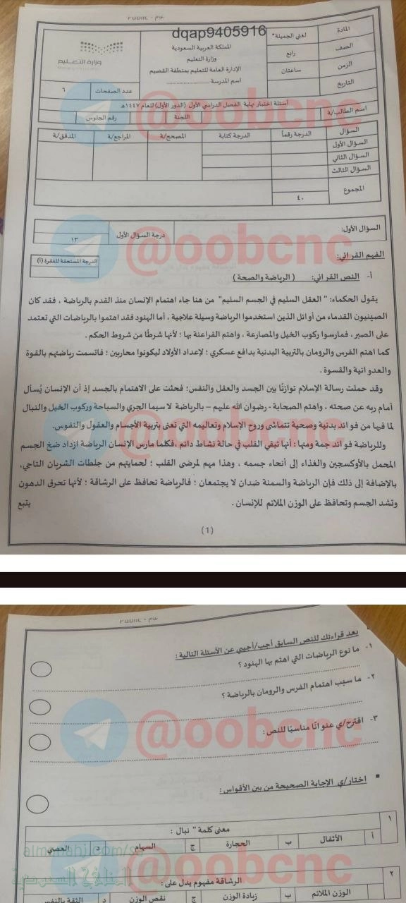 نقدم لكم في هذا الملف إجابة اختبار مركزي بمنطقة القصيم في مادة اللغة العربية للصف الرابع للفصل الدراسي الأول للعام 1447هـ...