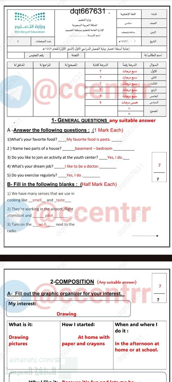 معلومات الملف: نقدم لكم في هذا الملف إجابة اختبار مركزي بمنطقة القصيم في مادة اللغة الانجليزية للصف السادس للفصل الدراسي الأول للعام 1447هـ... | ||