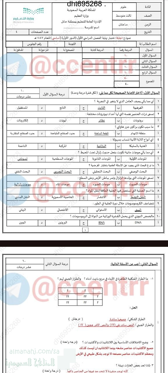 معلومات الملف: نقدم لكم في هذا الملف إجابة اختبار مركزي بمنطقة حائل في مادة العلوم للصف الثالث المتوسط للفصل الدراسي الأول للعام 1447هـ... | ||