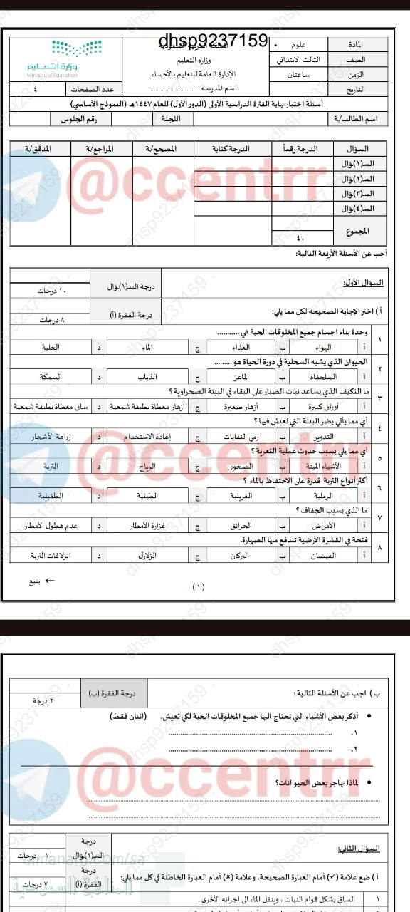 معلومات الملف: نقدم لكم في هذا الملف إجابة اختبار مركزي بمنطقة الأحساء في مادة العلوم للصف الثالث للفصل الدراسي الأول للعام 1447هـ... | ||