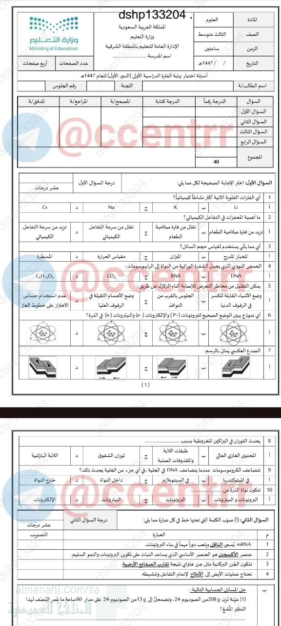 معلومات الملف: نقدم لكم في هذا الملف إجابة اختبار مركزي بمنطقة الشرقية في مادة العلوم للصف الثالث المتوسط للفصل الدراسي الأول للعام 1447هـ... | ||