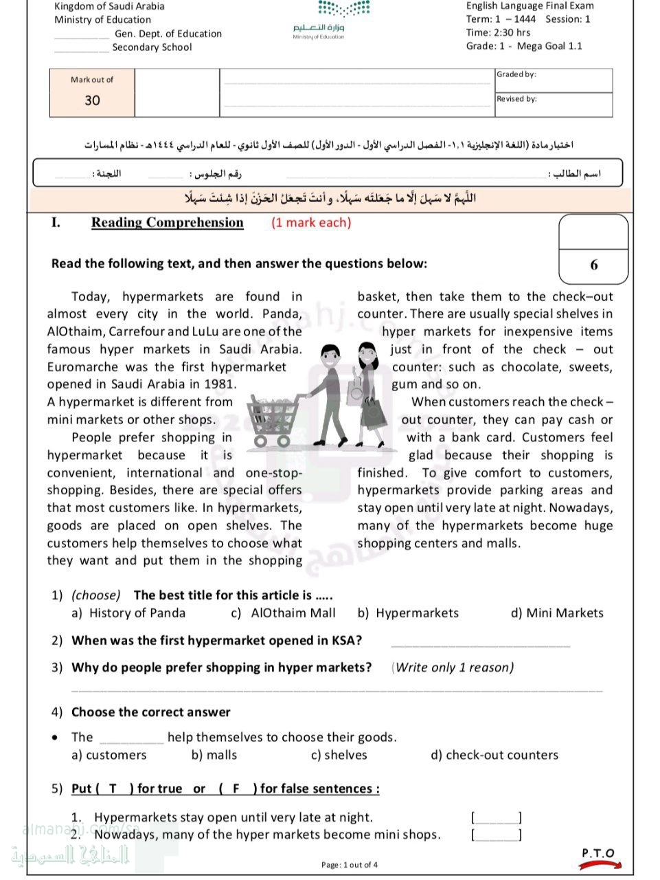 معلومات الملف: يغطي الاختبار النهائي لمادة الإنجليزية (Mega Goal 1.1) نطاقاً شاملاً للمهارات الأساسية. | ||