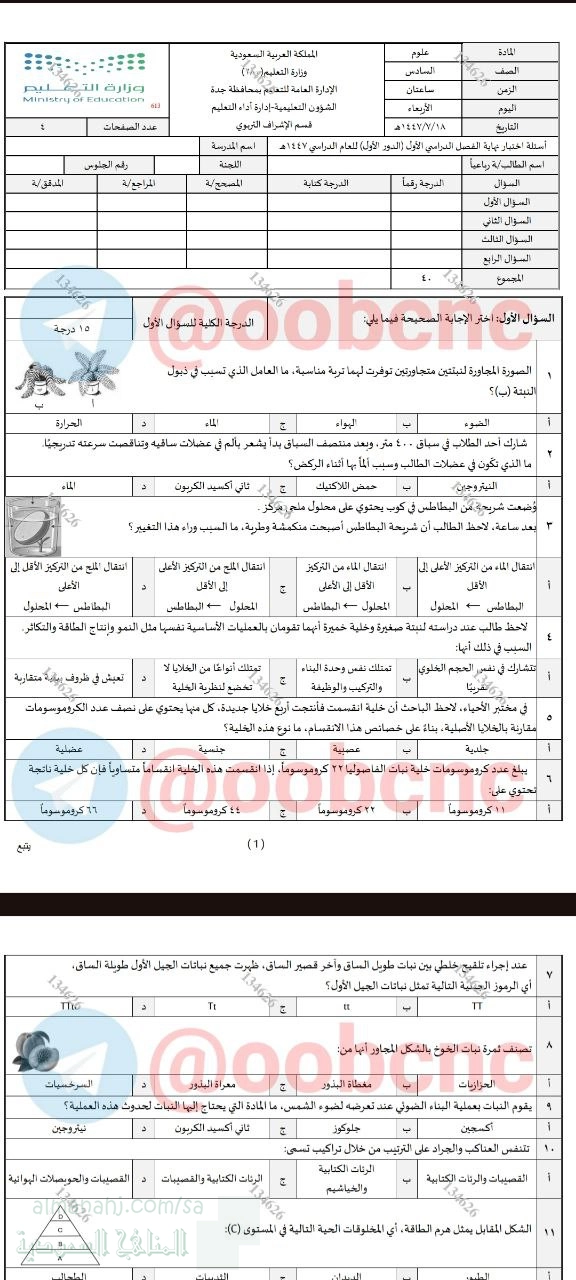 معلومات الملف: نقدم لكم في هذا الملف إجابة اختبار مركزي بمنطقة جدة في مادة العلوم للصف السادس للفصل الدراسي الأول للعام 1447هـ... | ||
