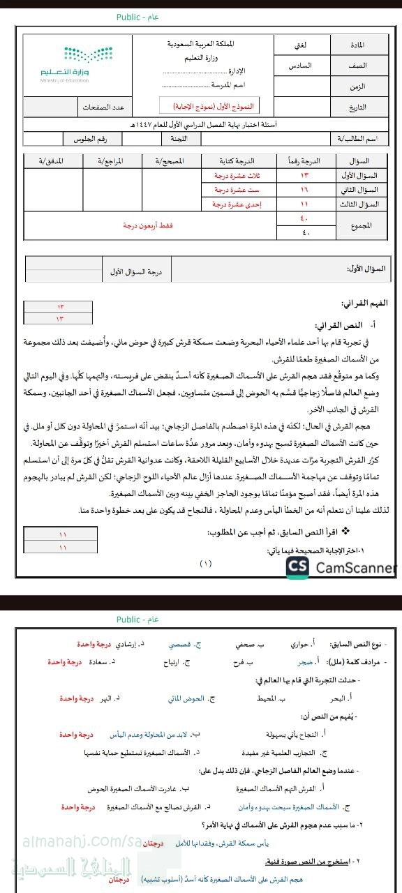 معلومات الملف: نقدم لكم في هذا الملف إجابة اختبار مركزي بمنطقة عسير في مادة اللغة العربية للصف السادس للفصل الدراسي الأول للعام 1447هـ... | ||