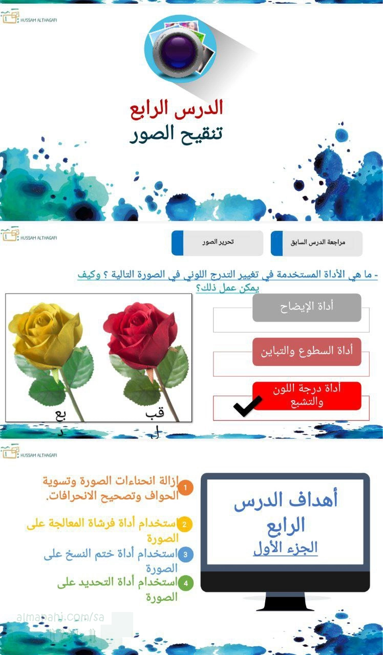شرح الدرس الرابع أدوات تنقيح الصور من الوحدة الأولى معالجة الصور المتقدمة لمقرر التقنية الرقمية ملف2, حسام مساعد الثقفي, الصف الأول الثانوي, المهارات الرقمية, الفصل الثاني, 1447_1448 - المناهج السعودية