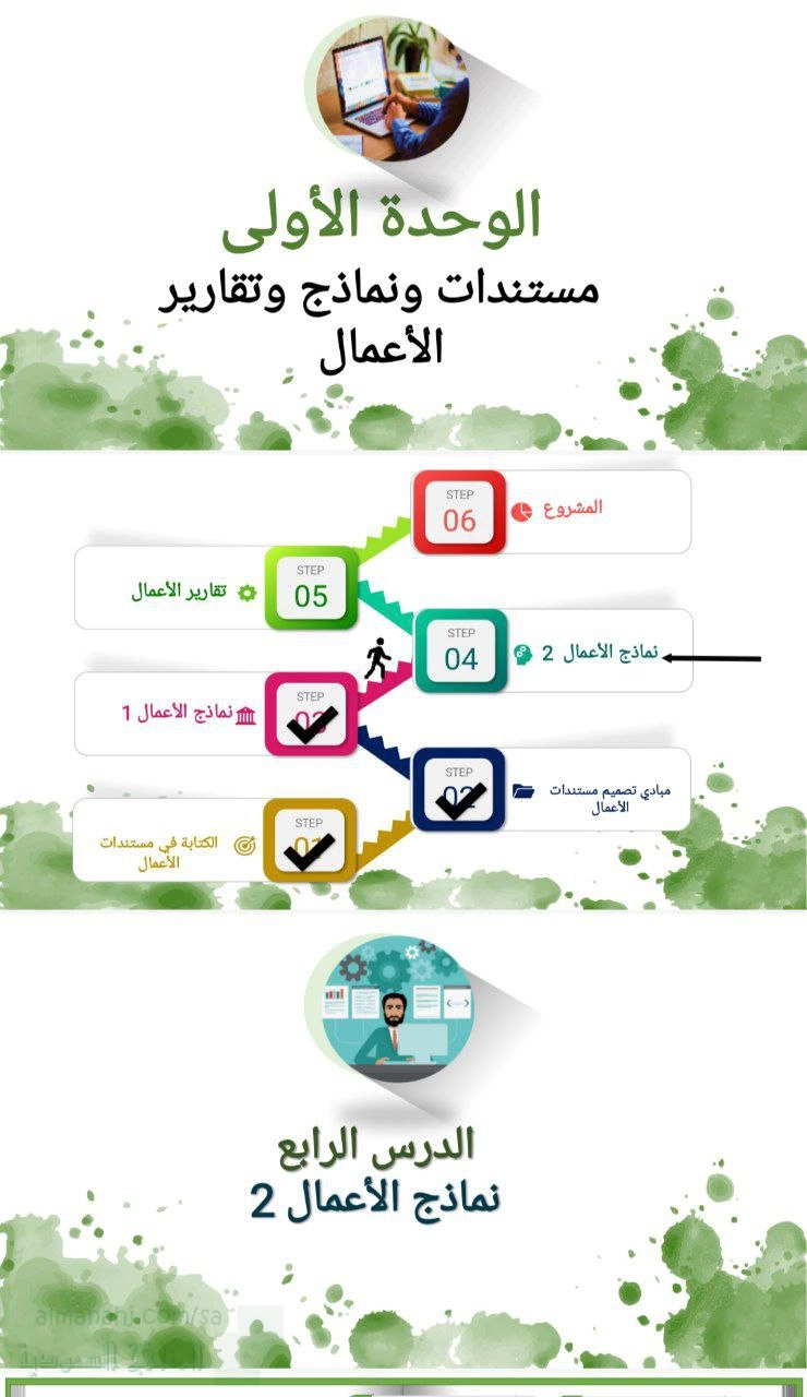 رابط تحميل وعرض ( شرح الدرس الرابع نماذج الأعمال2 من الوحدة الثانية مستندات ونماذج وتقارير لمقرر التقنية الرقمية ملف2 )