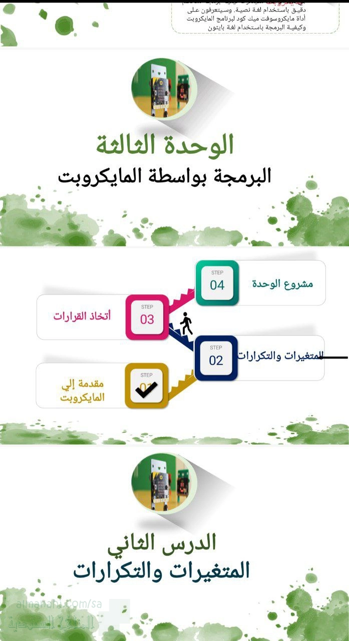 رابط تحميل وعرض ( شرح الدرس الثاني المتغيرات والتكرارت الوحدة الثالثة البرمجة بواسطة المايكرويت لمقرر التقنية الرقمية )