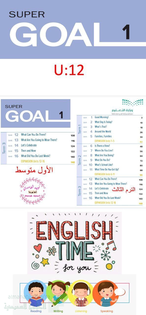 8. الصف الأول المتوسط, لغة انجليزية, مراجعة وتمارين تقوية لرفع مستوى التدني الوحدة12 غير محلولة