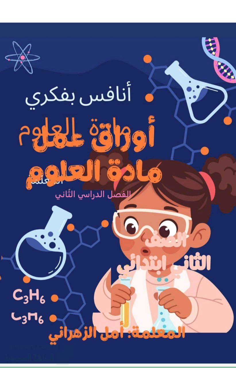 يضم هذا الملف مجموعة من أوراق العمل لمادة العلوم للصف الثاني الابتدائي، الفصل الثاني، من إعداد المعلمة أمل الزهراني.