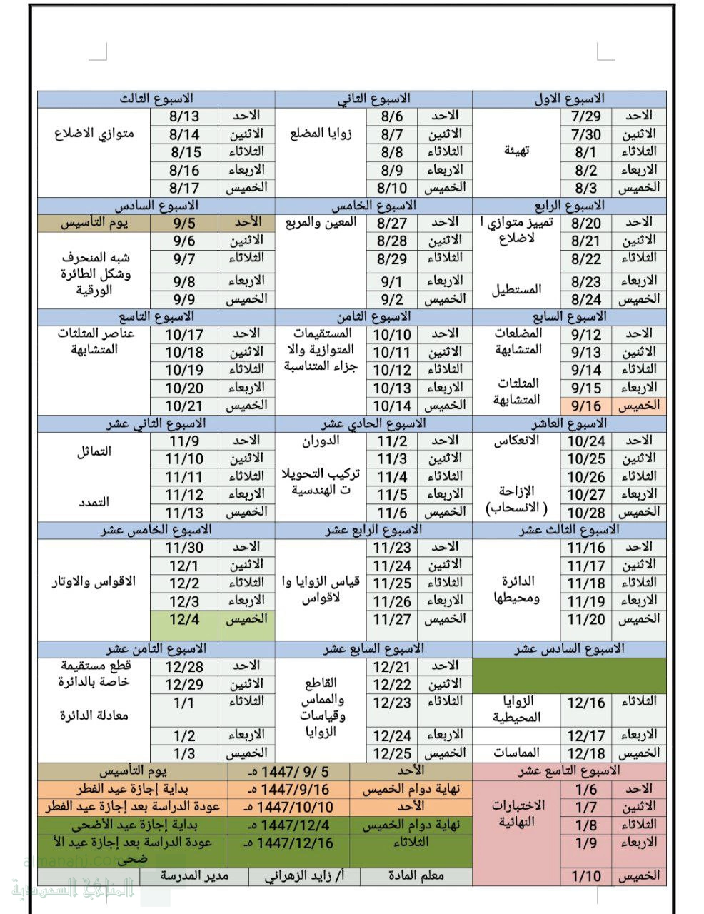 4. الصف الأول الثانوي, رياضيات, توزيع المنهج هيكل متكامل للهندسة والتحويلات الهندسية والدوائر