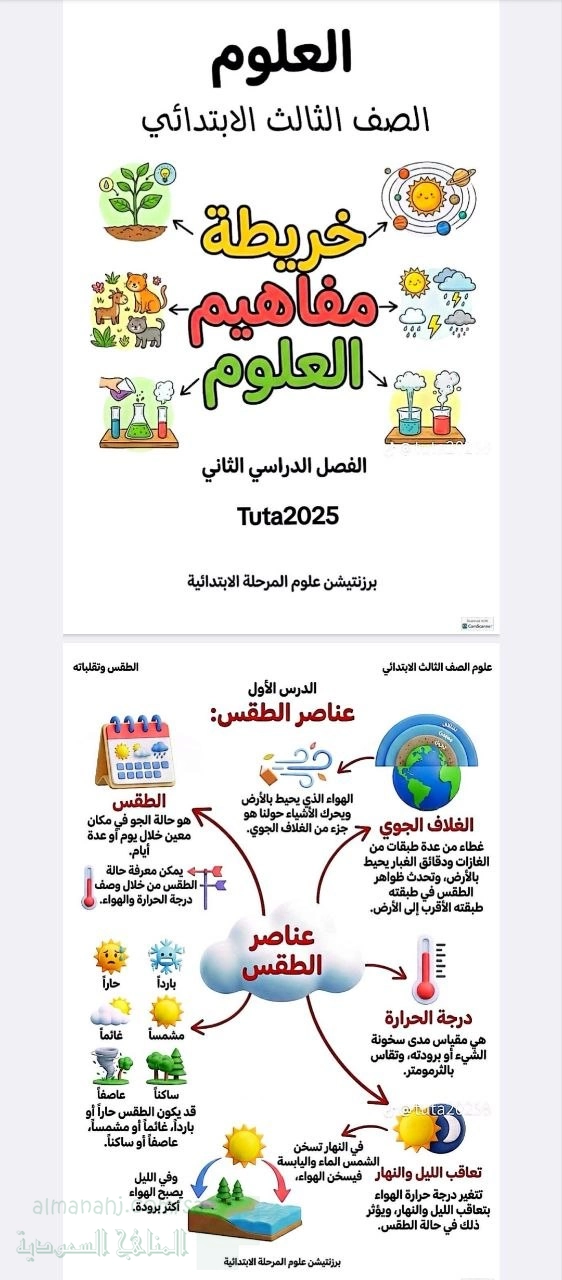 يحتوي هذا الملف على عروض تقديمية وخرائط مفاهيمية لمادة العلوم للصف الثالث الابتدائي خلال الفصل الدراسي الثاني.