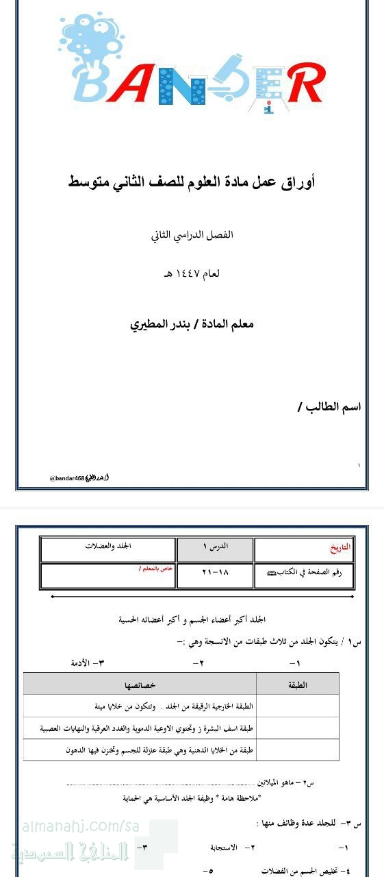 | أوراق عمل شاملة للمنهج 1447ه - إعداد: بندر المطيري | ||