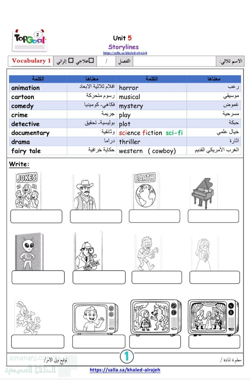 4. ورقة عمل مراجعة للوحدة الخامسة Top goal للصفوف العليا