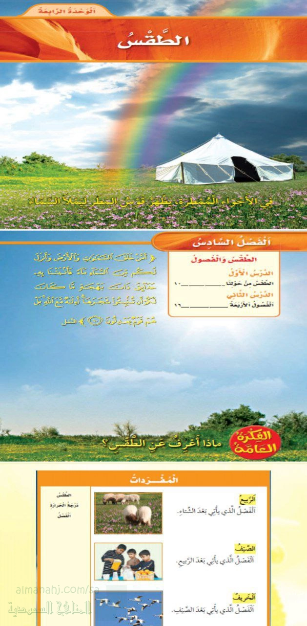 2. الصف الأول, علوم, عرض صوري لفصول السنة