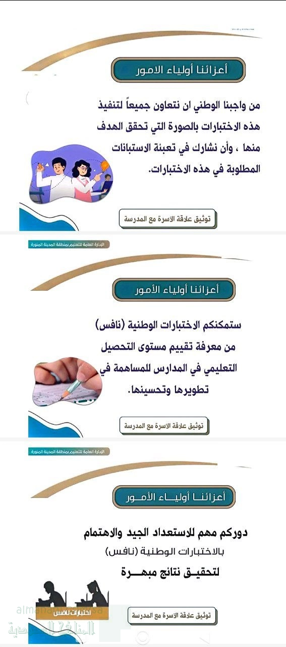 تم إيجاد الملف: رسائل توعوية لأولياء الأمور حول الاختبارات الوطنية نافس