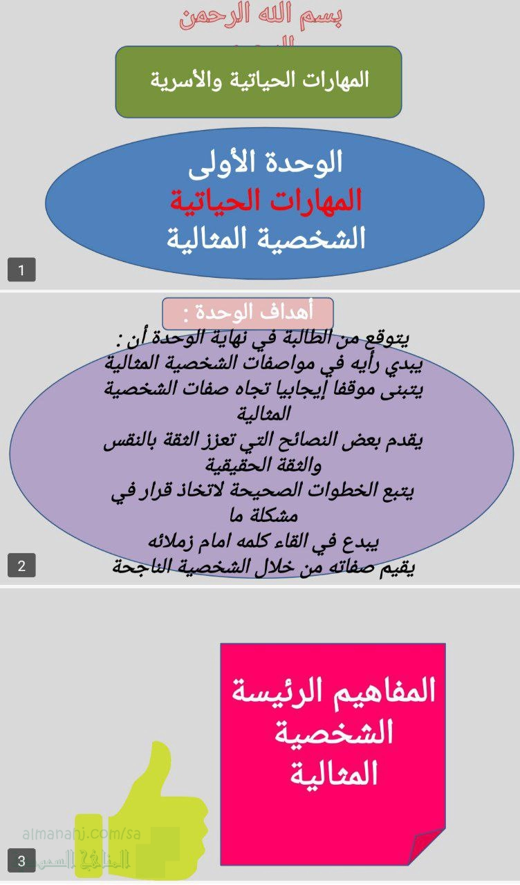 13. الصف الثاني المتوسط, تربية أسرية, عرض بوربوينت الوحدة الأولى المهارات الحياتية الشخصية المثالية