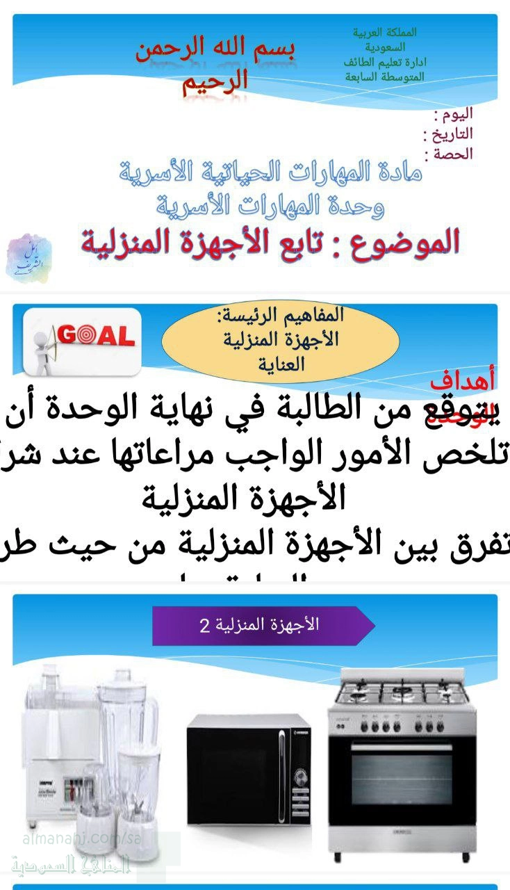 8. تربية أسرية, الفصل الثاني, 1447_1448 هجري, عرض بوربوينت درس الأجهزة المنزلية 1