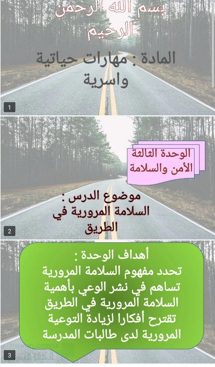 1. تربية أسرية, الفصل الثاني, 1447_1448 هجري, عرض بوربوينت الأمن والسلامة المرورية في الطريق 3
