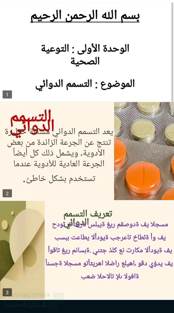 13. الصف الثالث المتوسط, تربية أسرية, عرض بوربوينت الوحدة الأولى التسمم الدوائي1