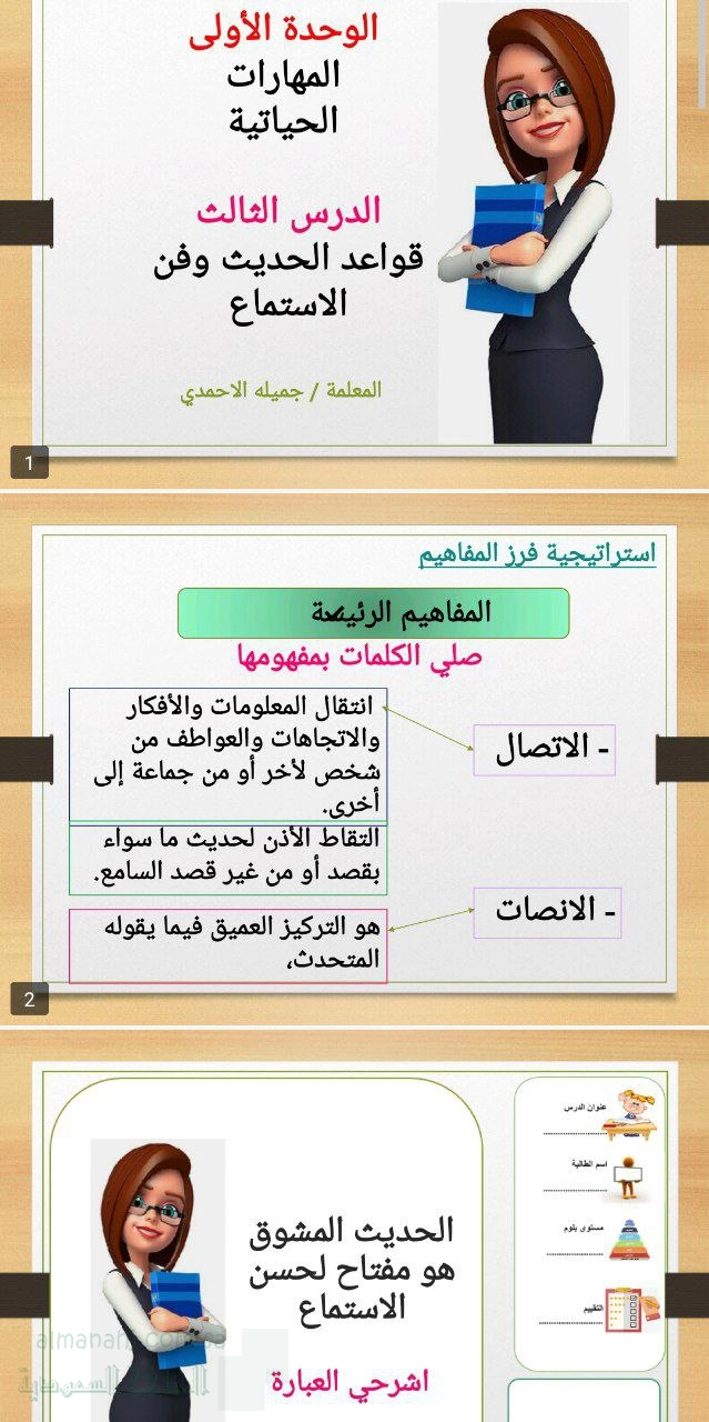 3. تربية أسرية, الفصل الثاني, 1447_1448 هجري, عرض بوربوينت الوحدة الأولى الدرس الثالث قواعد الحديث وفن الإستماع3