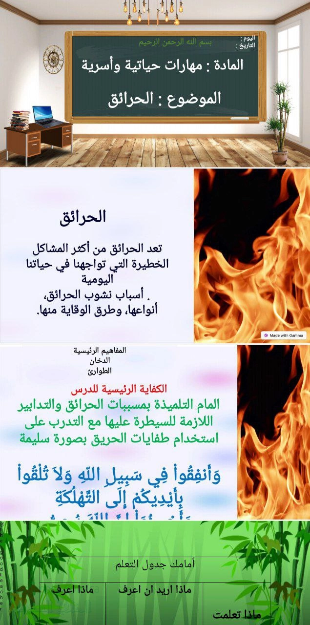 2. الصف الثالث المتوسط, تربية أسرية, عرض بوربوينت درس الحرائق