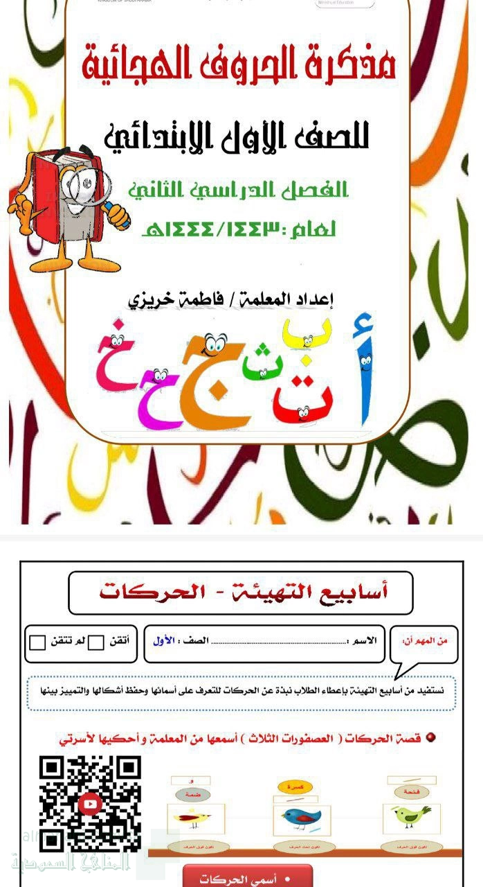 مذكرة شاملة لتعليم الحروف الهجائية والمهارات القرائية الأساسية, الصف الأول, لغة عربية, الفصل الثاني, 1447_1448 هجري - المناهج السعودية