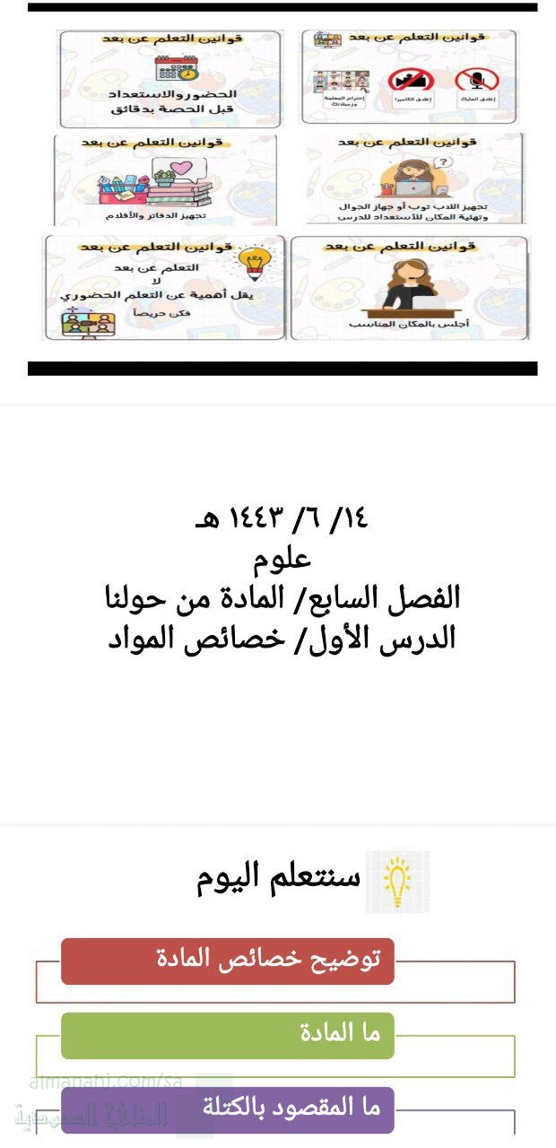 3. الصف الأول, علوم, مراجعة درس خصائص المواد 1443ه