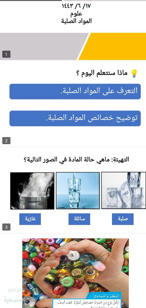 1. الصف الأول, علوم, عرض بوربوينت درس المادة الصلبة حالات المادة