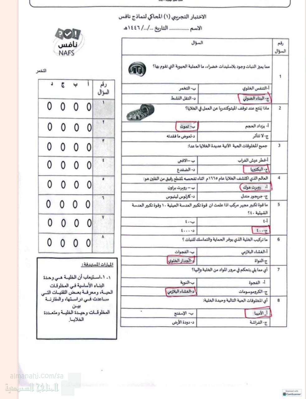 6. علوم, الفصل الثاني, 1447_1448 هجري, تجميع حلول نماذج اختبارات محاكية لنافس يحتوي الملف على أكثر من 40 نموذج 1446ه‍