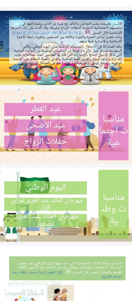 12. الصف الثالث المتوسط, تربية أسرية, عرض تقديمي عن الاحتفال بالمناسبات الوطنية والاجتماعية